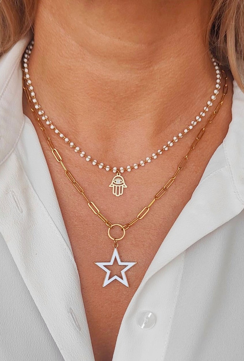 2 collares de acero quirúrgico, inoxidable, con cadena extensora, hechos a mano, se pueden mojar, hipoalergénicos.