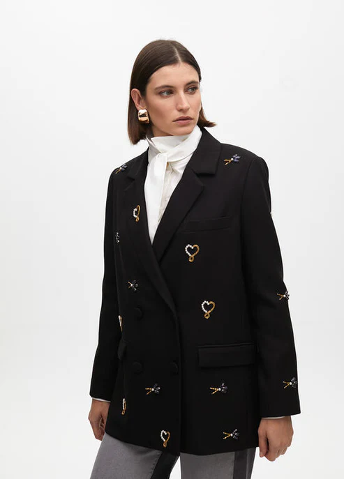 BLAZER AMERICANA LOLA CASADEMUNT CON DETALLES DE LOGO. La colección de Lola Casademunt dice mucho de ti: define tu estilo y realza tu personalidad. Moda femenina y elegante para una mujer atrevida y cosmopolita, con prendas informales y elegantes. Lola Casademunt se adapta a las tendencias actuales, conservando sus rasgos distintivos a través del color y los estampados. Encuentra una amplia variedad de prendas (vestidos, faldas, camisetas, tops, blusas, suéteres, chaquetas, pantalones, blazers, monos y otras prendas), calzado y una amplia variedad de accesorios para complementar tu estilo (carteras, bufandas, cinturones, etc.). Composición: —– Exterior 1 —– 78 % Poliéster 22 % Rayón