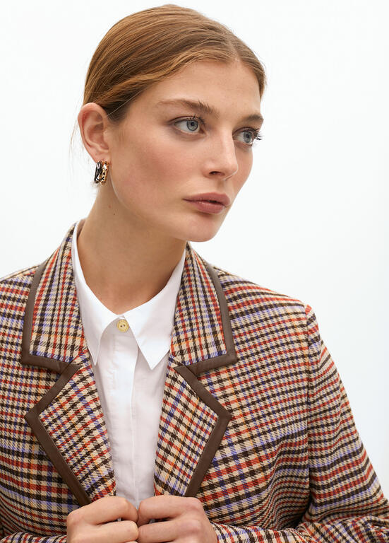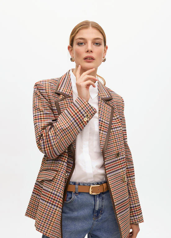 Esta americana de cuadros en tonos marrón y azul combina un diseño clásico con un ribete en contraste que aporta un toque distintivo y elegante. Perfecta para quienes buscan un estilo sofisticado y versátil, su confección cuidada garantiza comodidad y durabilidad en cualquier ocasión. Ideal para complementar tanto looks formales como casuales con un aire moderno y refinado.