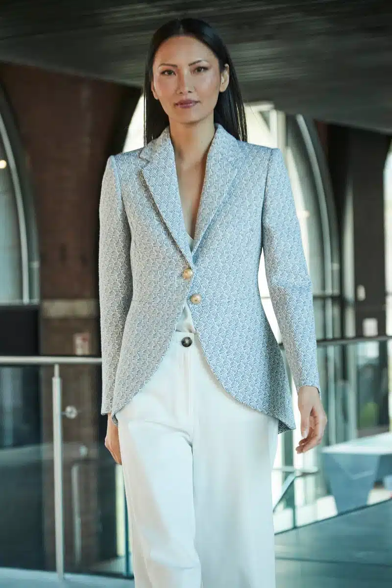Esta blazer entallada de corte levita es la definición de elegancia estructurada, diseñada para realzar la figura con un patrón que afina la cintura y aporta presencia. Su solapa de muesca a tono equilibra la estética clásica con un toque de sofisticación atemporal, mientras que los cuatro botones dorados añaden un sutil aire de distinción. Confeccionada artesanalmente en España, esta prenda en color azul es una pieza de edición limitada que refleja la tradición de la sastrería con una visión moderna y refinada. Más que una simple chaqueta, esta blazer entallada azul es una expresión de estilo y seguridad para la mujer que aprecia la calidad en cada detalle. Su tejido de origen europeo, cuidadosamente seleccionado y con certificado de sostenibilidad, garantiza una adaptación impecable al diseño, ofreciendo una prenda versátil que se adapta a cualquier ocasión. Con una confección minuciosa que incorpora técnicas artesanales como el picado y el repulgo, esta blazer se convierte en un símbolo de exclusividad y sofisticación, pensado para quienes buscan marcar la diferencia con elegancia.