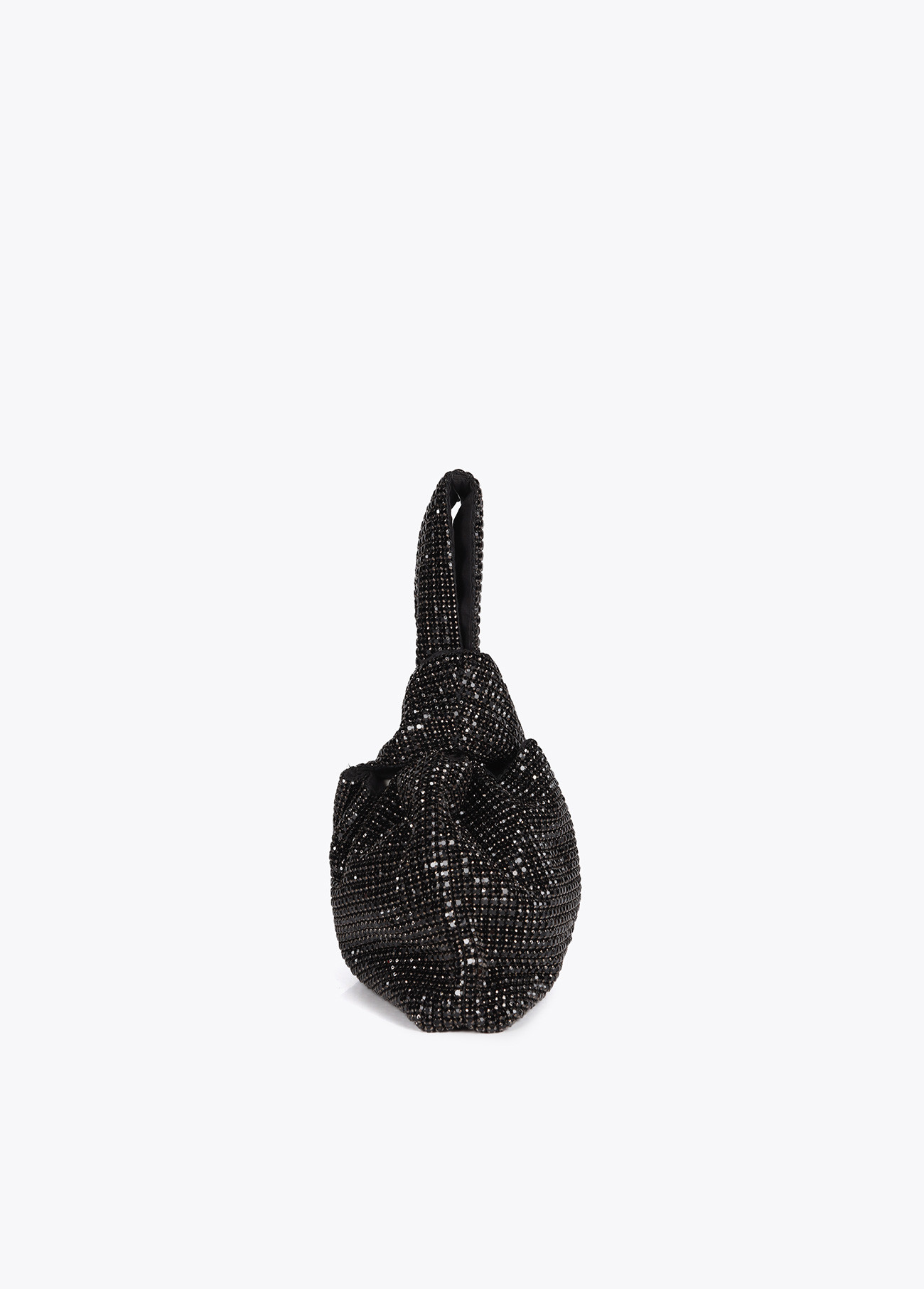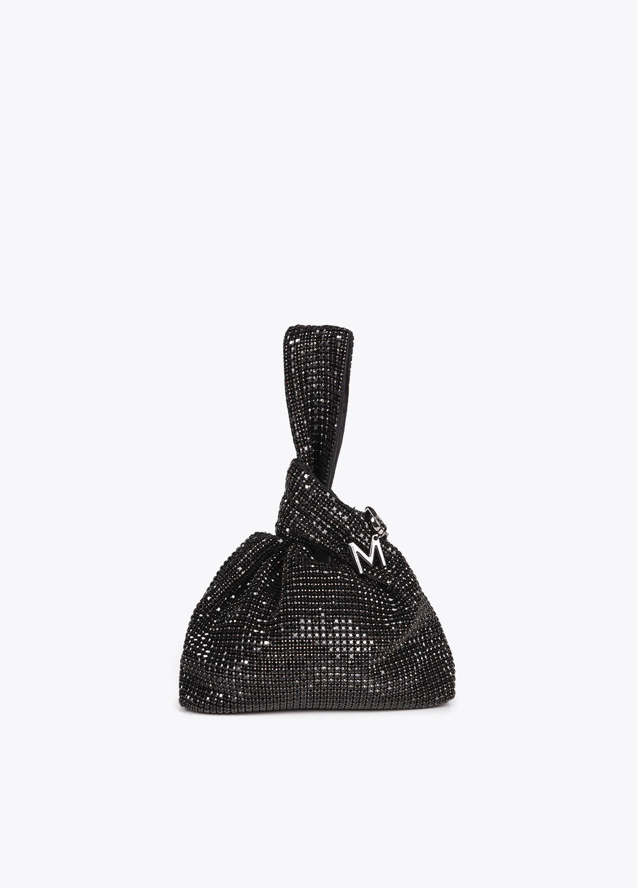 Exclusivo bolsito de malla con strass brillante y logo metálico. Diseño compacto con asa de mano, cierre seguro y forro interior suave. Ideal para aportar un toque chic a tus looks de noche.