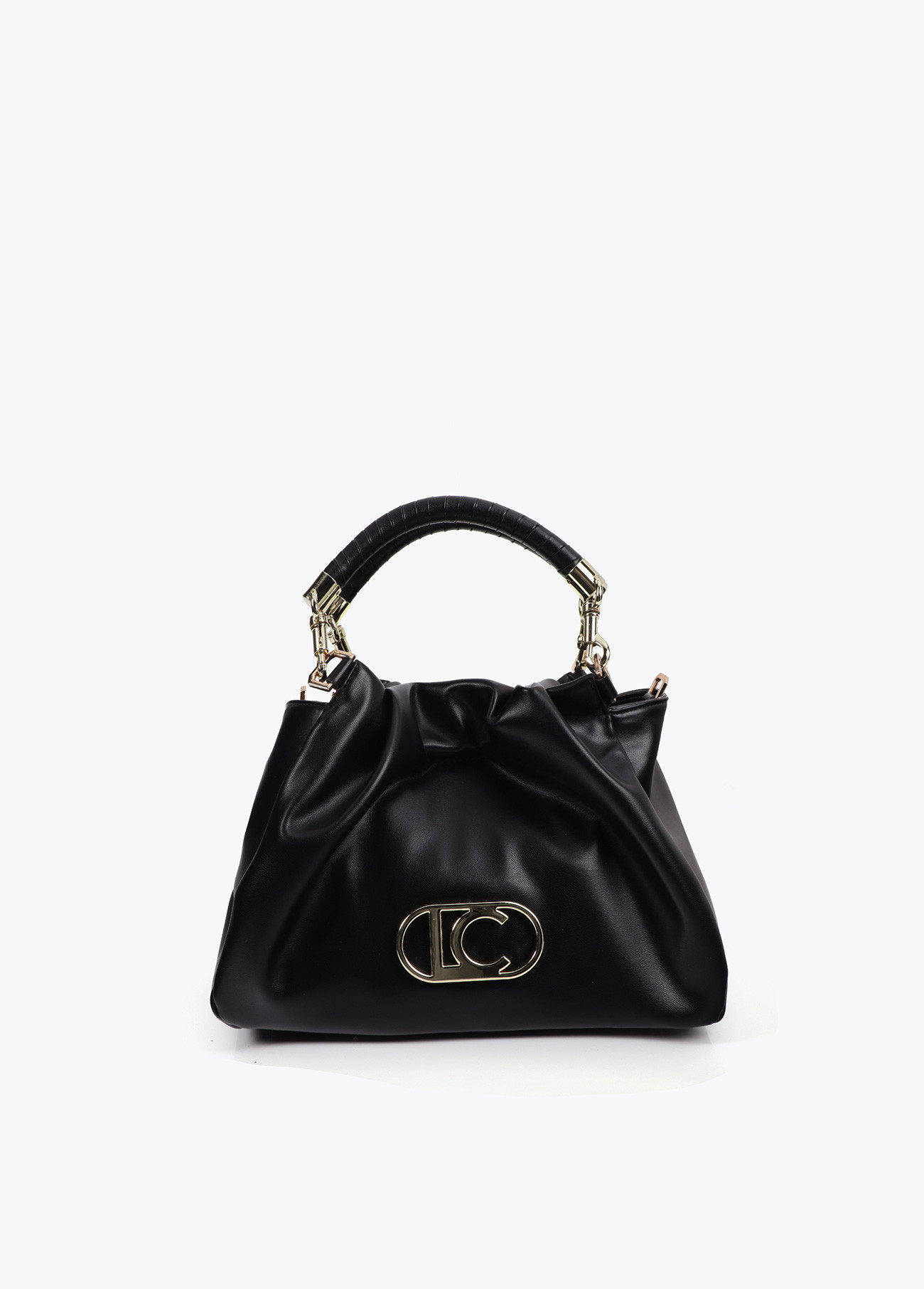 Bolso bandolera negro efecto piel asa trenzada Lola Casademunt