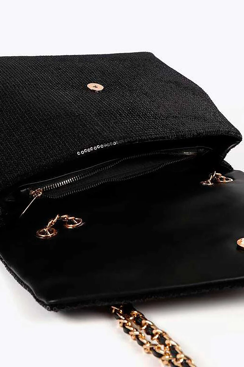 Bandolera con solapa con tachas oro y plata Negro Lola Casademunt