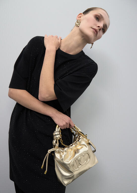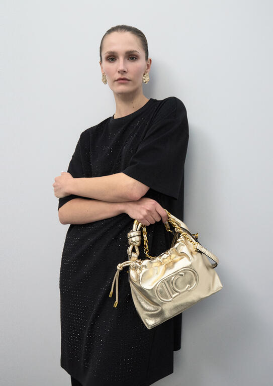 Bandolera efecto piel monograma rombos logo ovalado Dorado Lola Casademunt