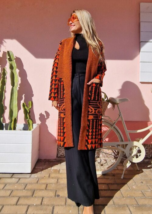 Chaqueta de punto Marrón naranja y negro