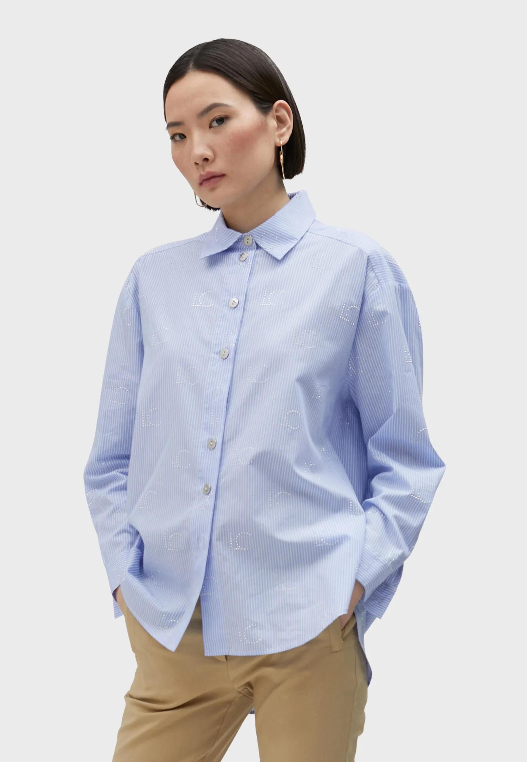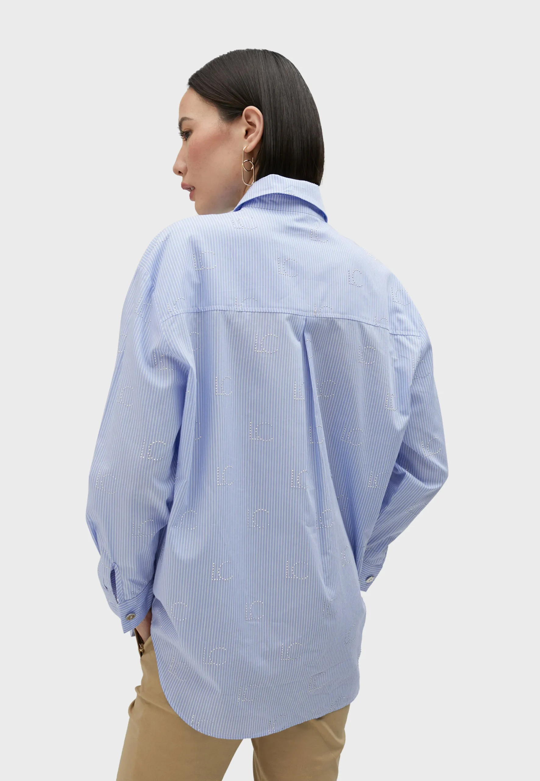 Camisa rayas logo strass AZUL-BLANCO Lola Casademunt
