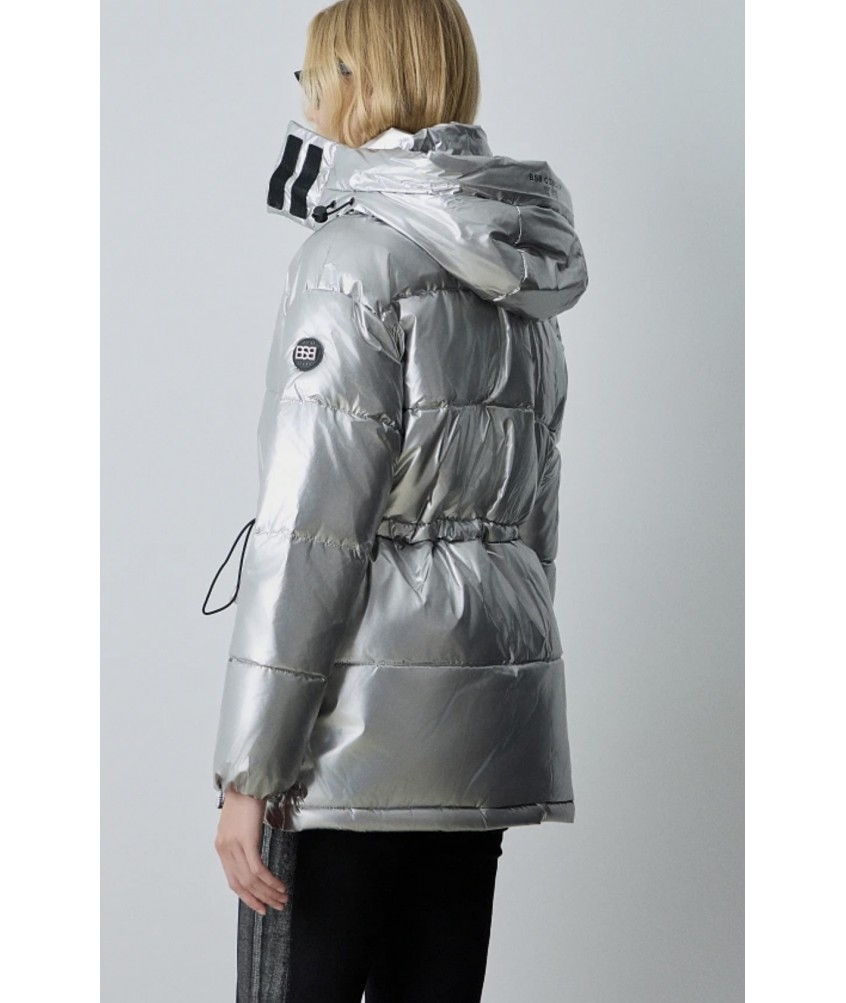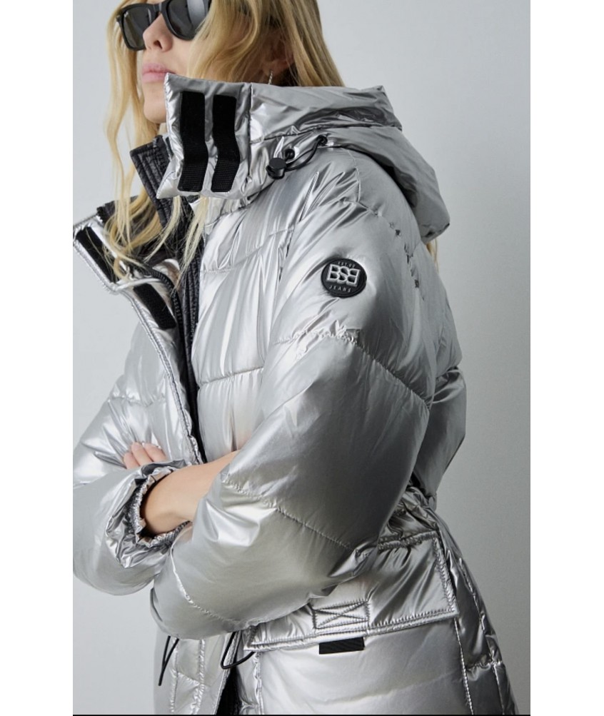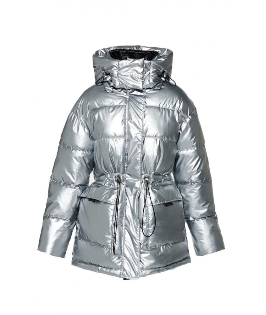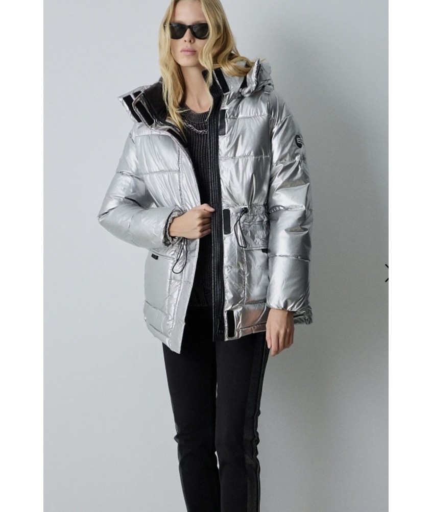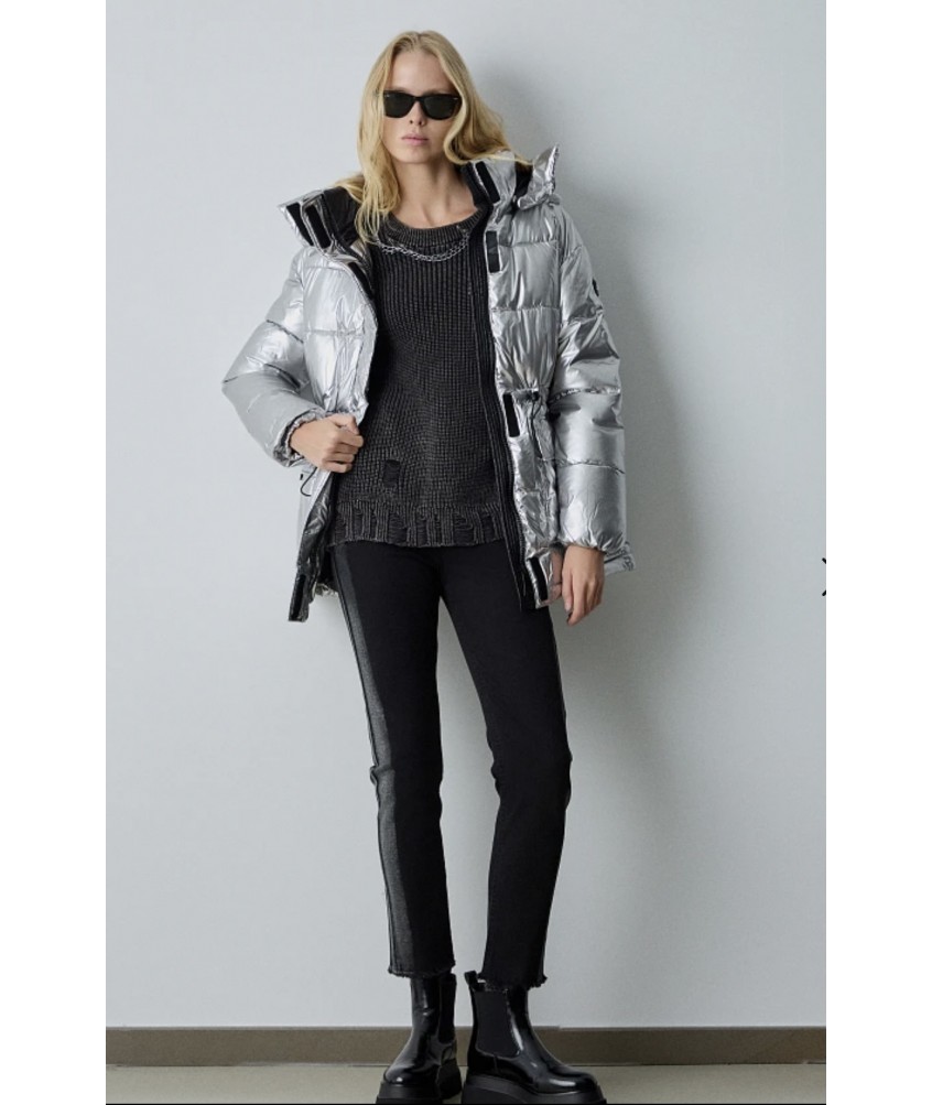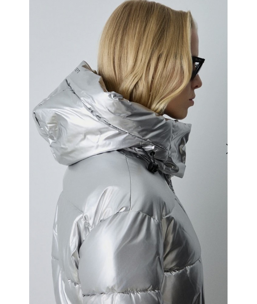 Chaquetón largo acolchado plateado