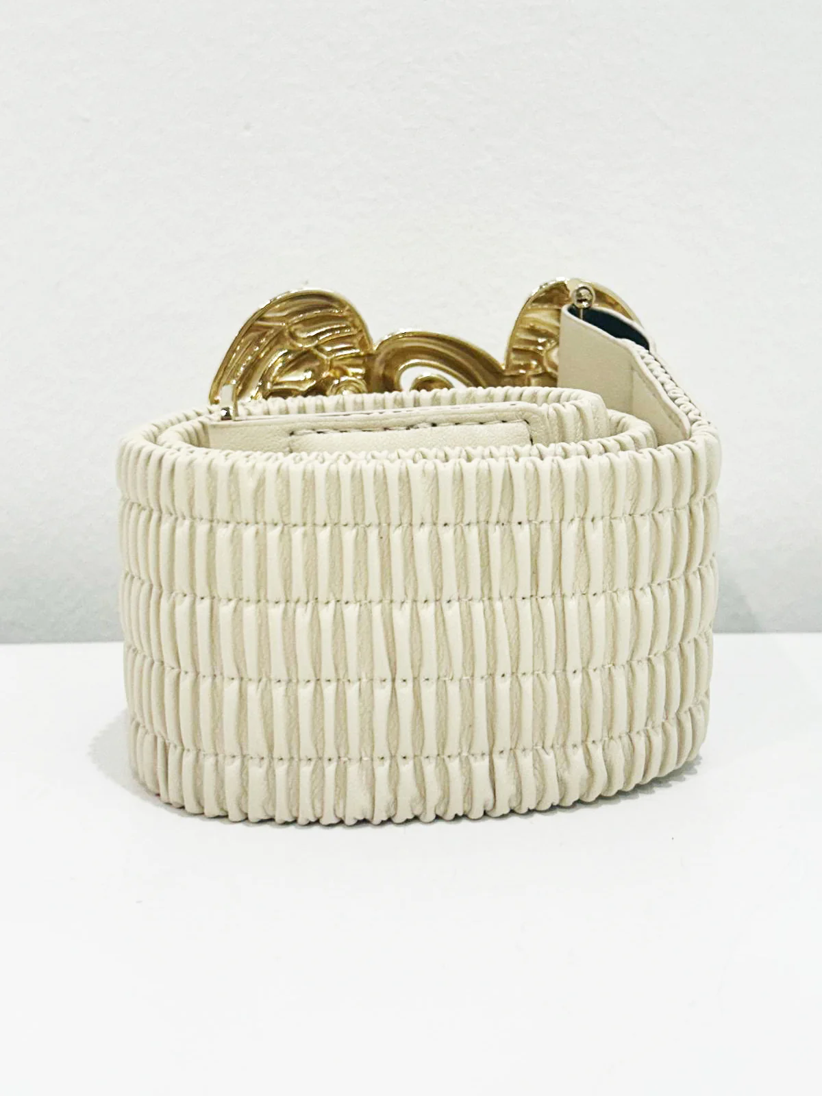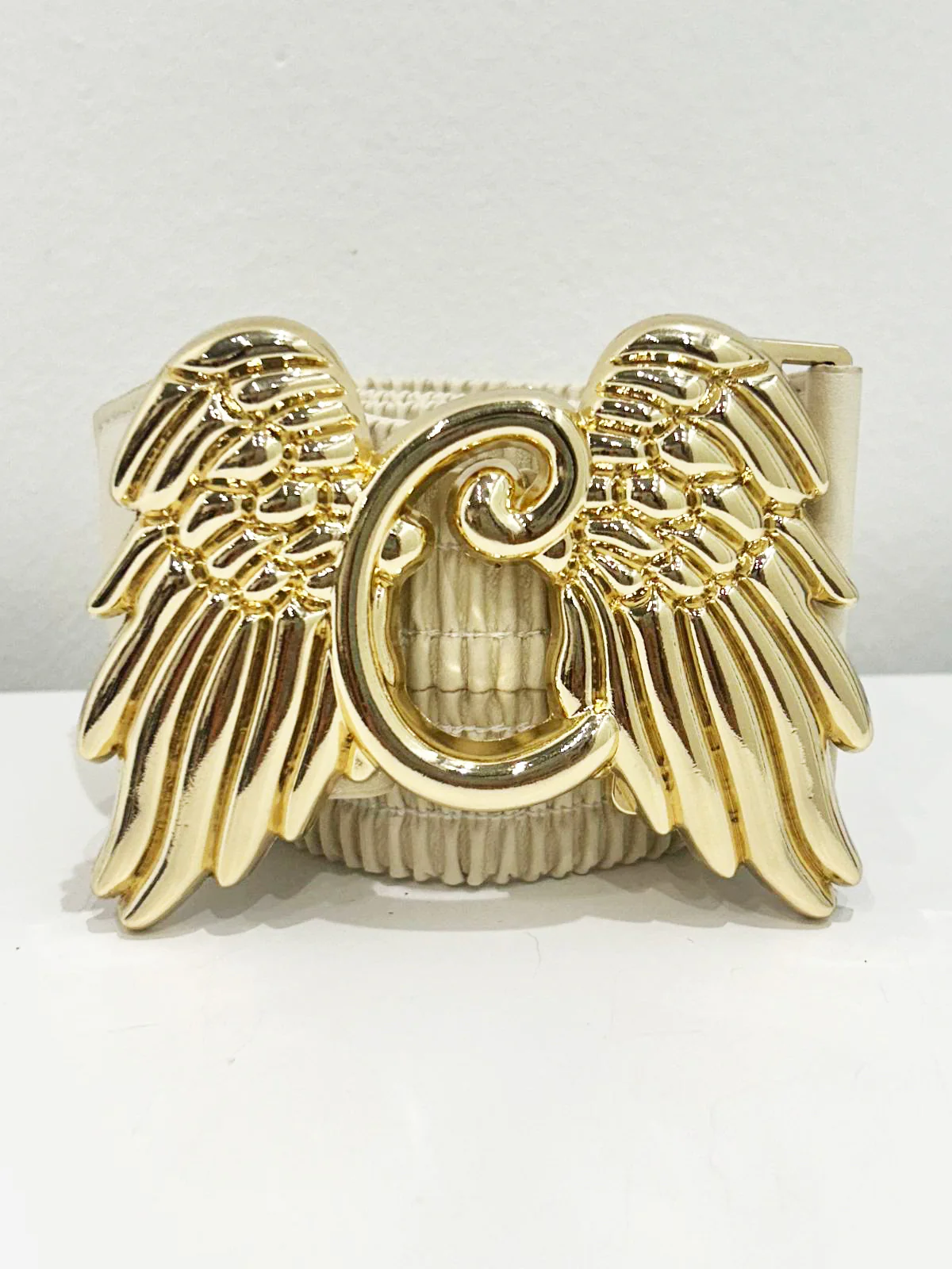 Cinturon elastico color beige y alas en oro Camaleonica by Capriche