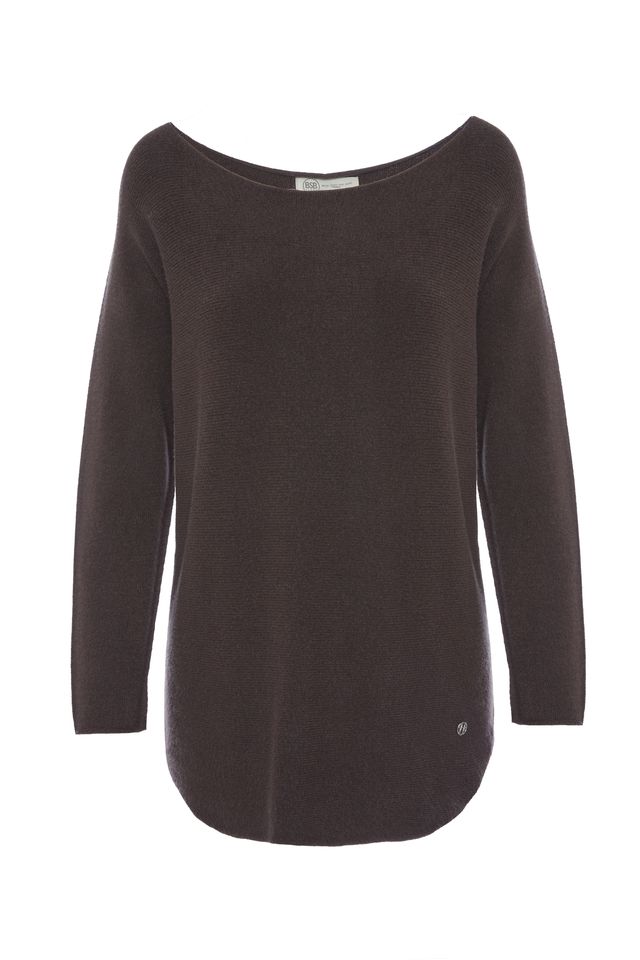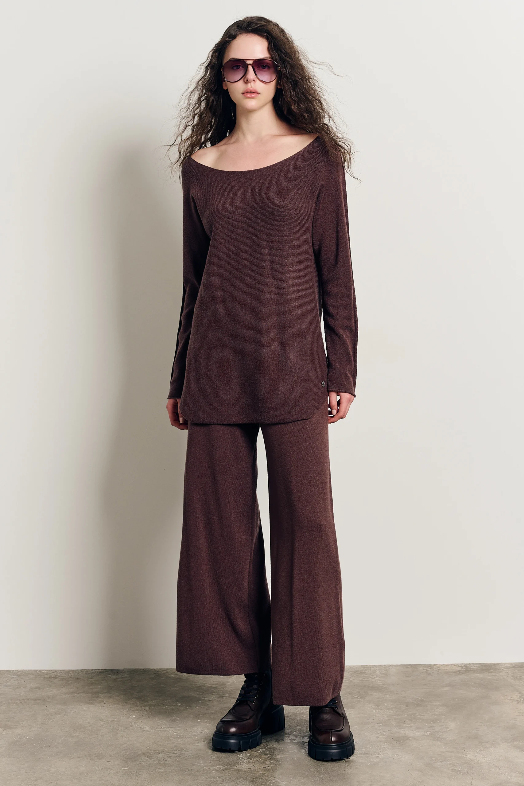 Conjunto 2 piezas punto marrón chocolate jersey y pantalón cintura elástica, blusa con mangas largas, escote redondo, diseño recto, suave al tacto
