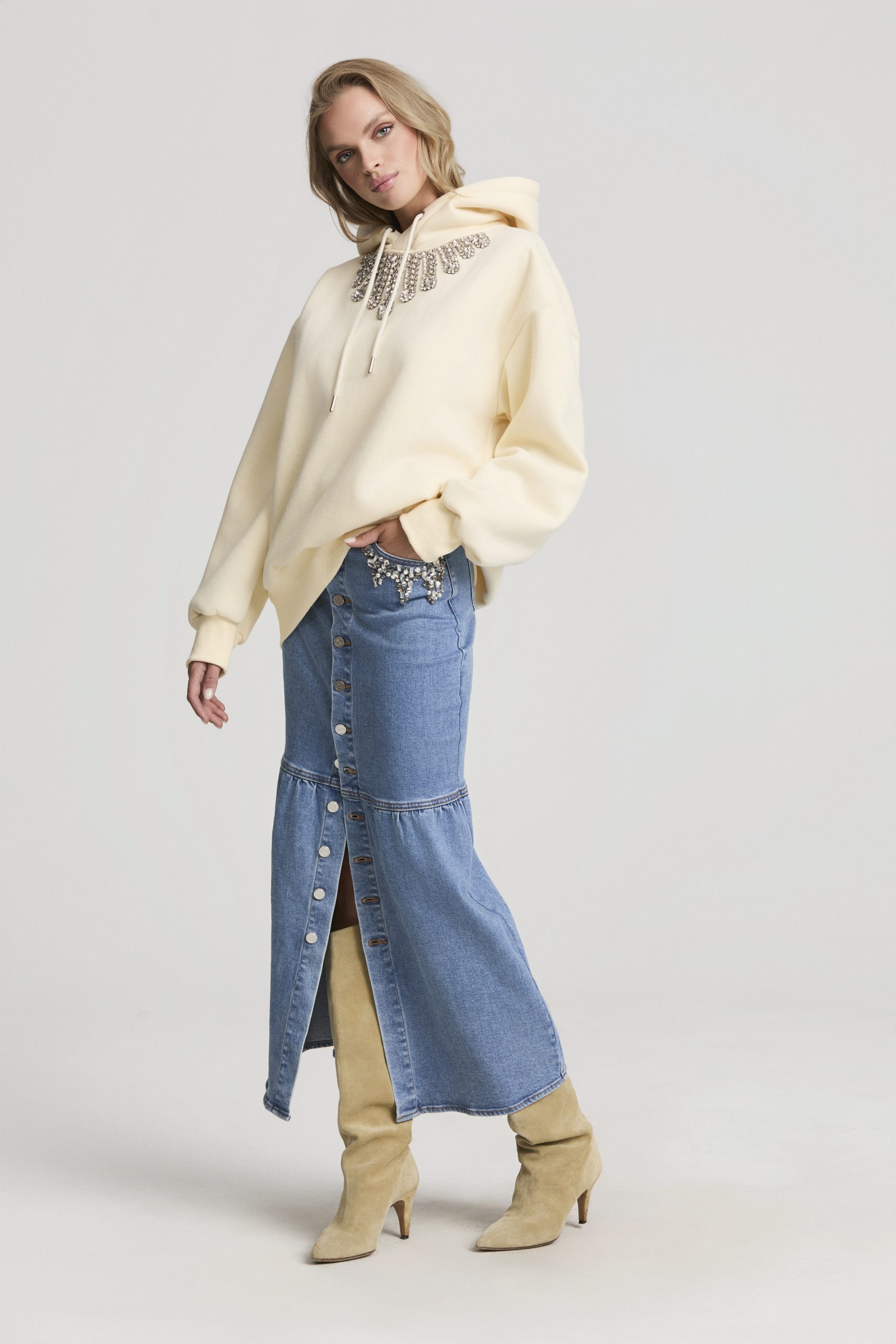 Falda larga vaquera elástica de la colección otoño Invierno Fetiche Suances