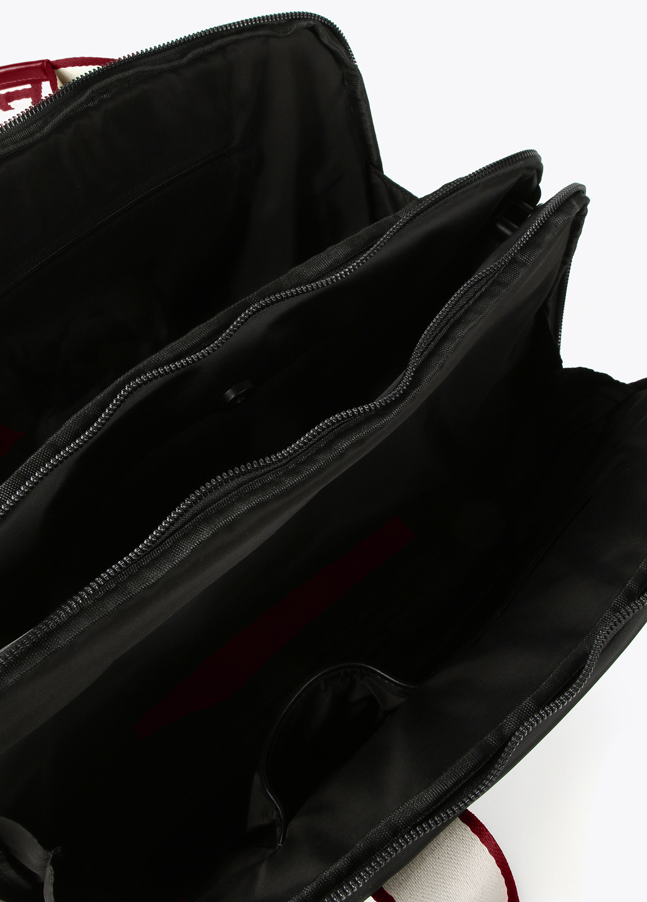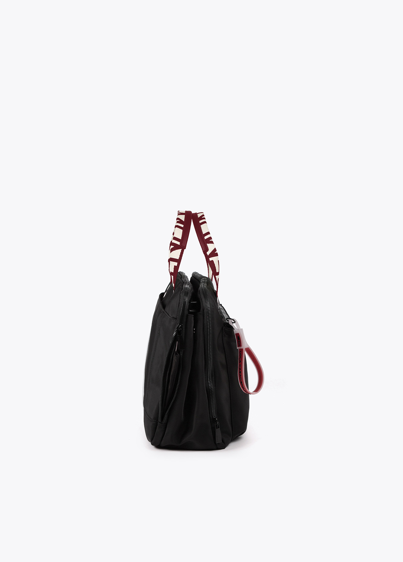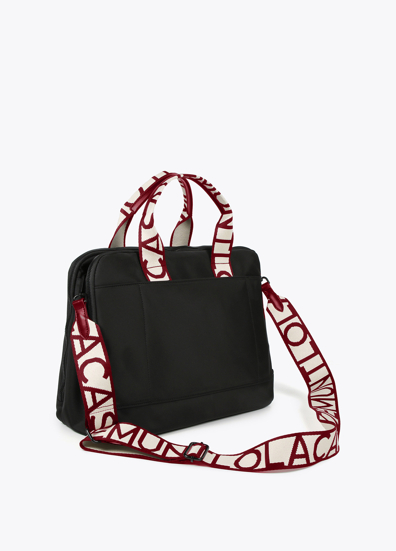 Maletín de nylon con asas logotipadas en contraste y tirador de silicona. Amplios compartimentos interiores. Ideal para llevar documentos o portátil con estilo. Diseño funcional y moderno.