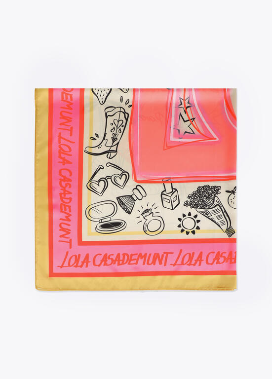 Pañuelo satinado con estampado tropical Azul-Multicolor Lola Casademunt