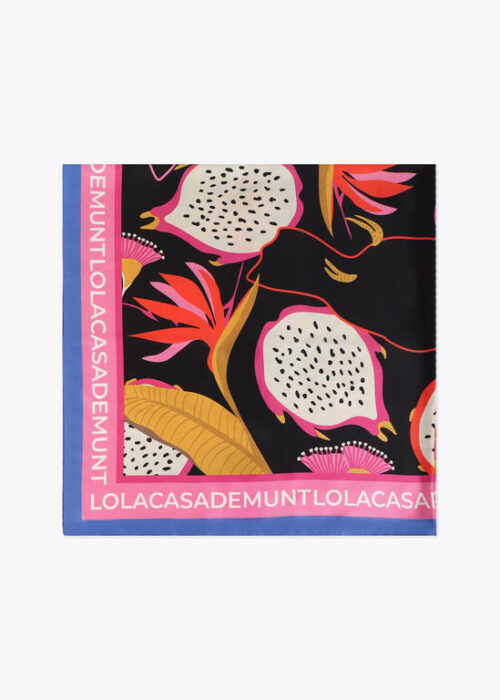 Pañuelo satinado con estampado tropical Negro-Multicolor Lola Casademunt