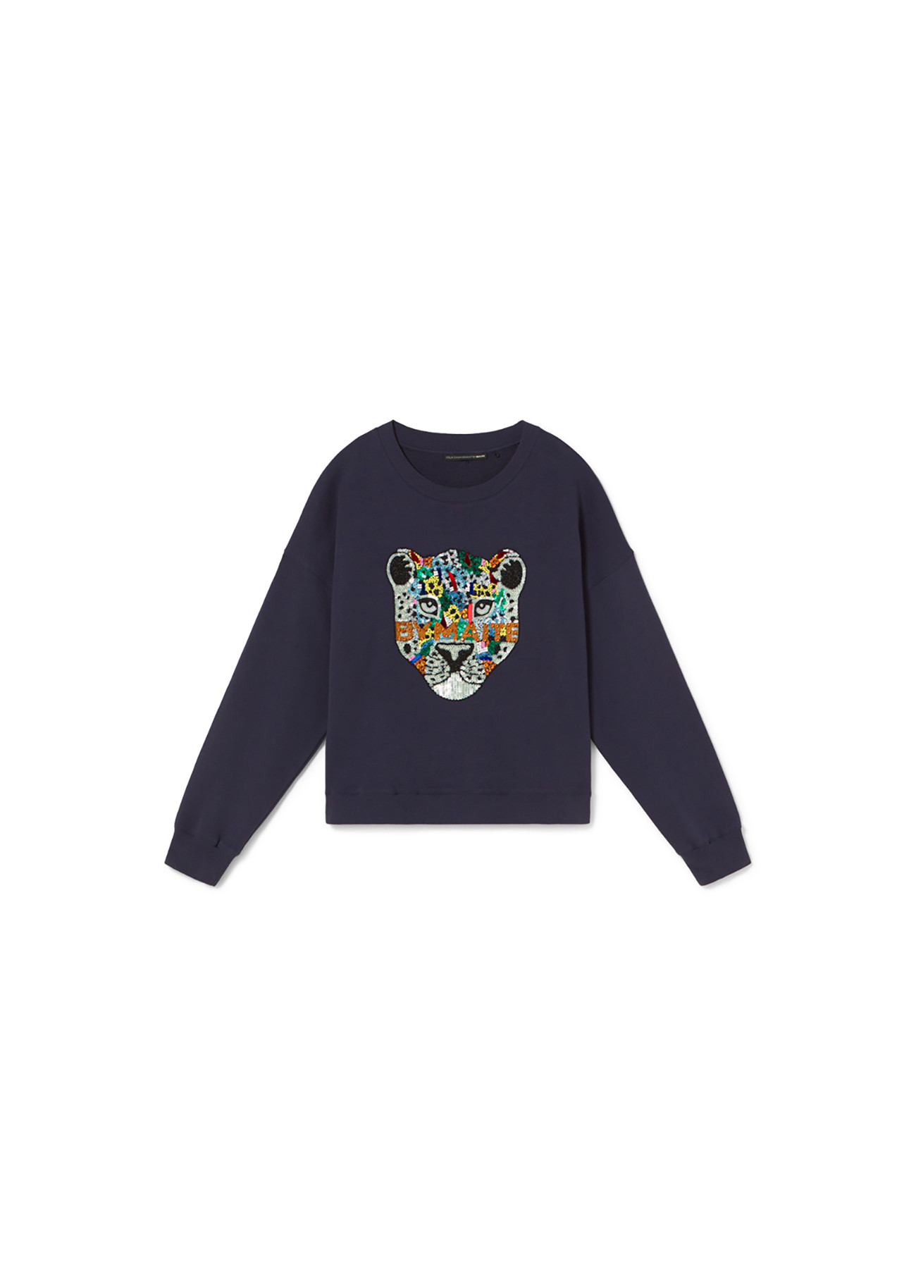Sudadera de algodón con un llamativo diseño de animal en pedrería. Manga larga y ajuste cómodo. Un toque de brillo que transforma un look casual en sofisticado.
