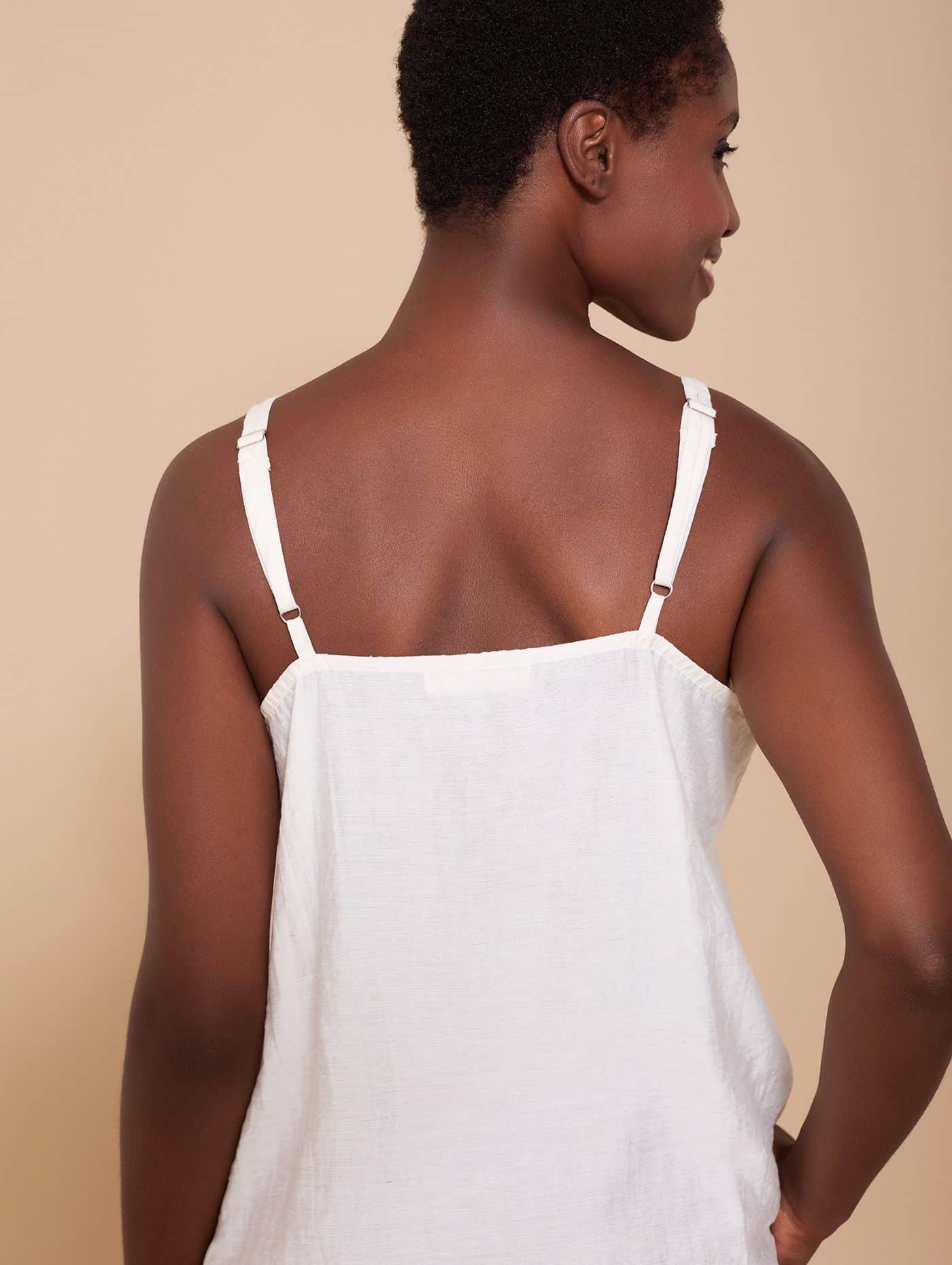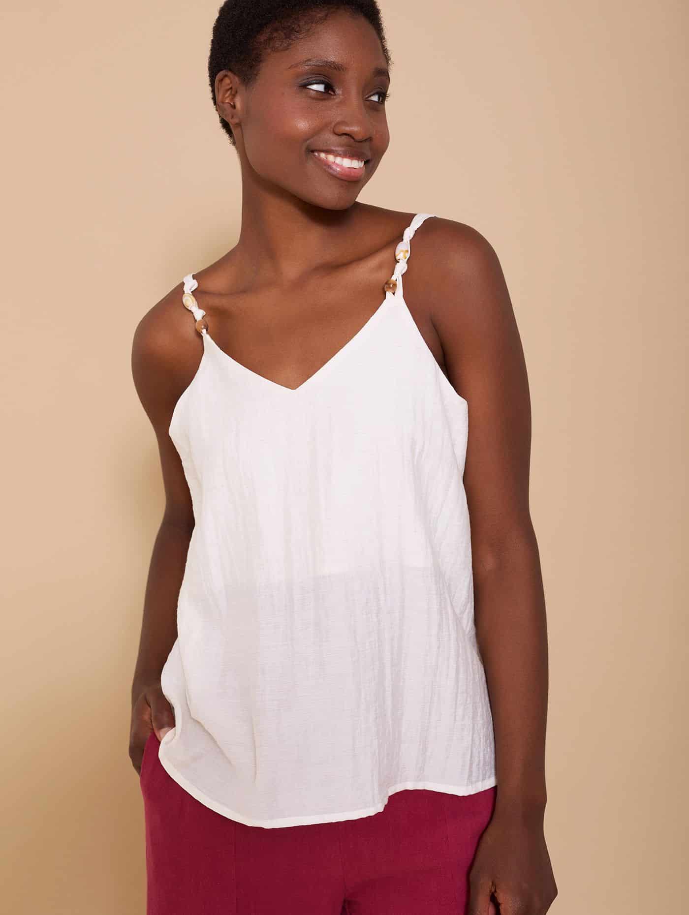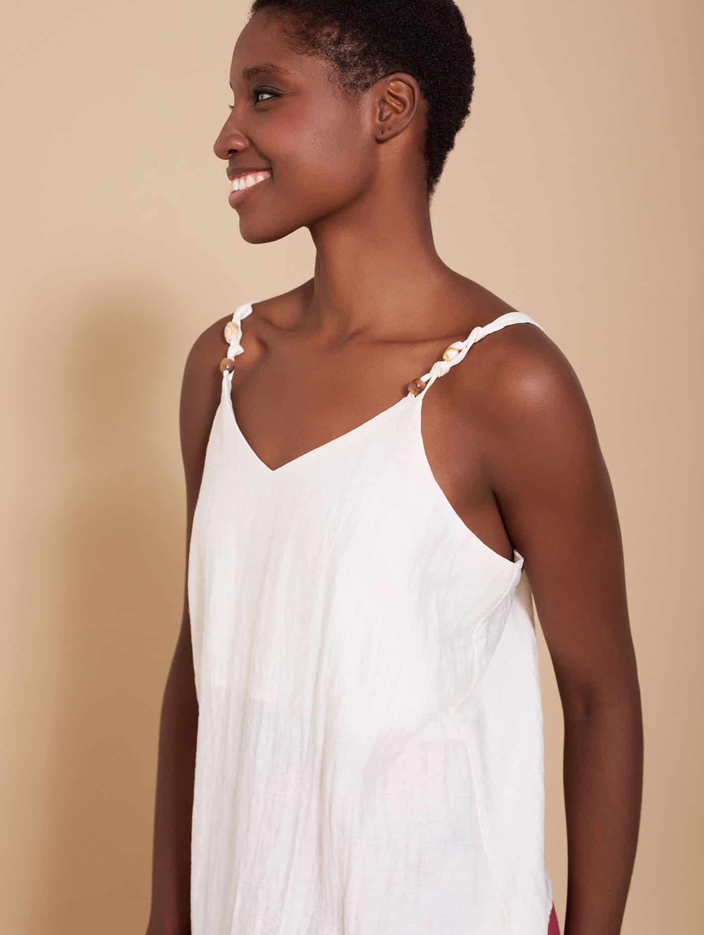 Top lencero de tirantes con nudos. detalle de piedras a contraste. COMPOSICIÓN 15%LINEN 72%VISCOSE 13%POLYAMIDE