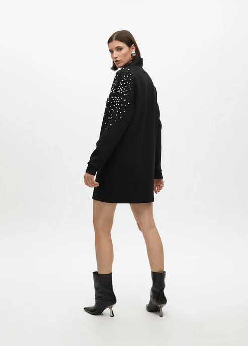 VESTIDO LOLA CASADEMUNT CON MANGAS Y DETALLES JOYERÍA. La colección Lola Casademunt dice mucho de ti: define tu estilo y realza tu personalidad. Moda femenina y elegante para una mujer atrevida y cosmopolita, con prendas informales y elegantes. Lola Casademunt se adapta a las tendencias actuales, conservando sus rasgos distintivos a través del color y los estampados. Encuentra una amplia variedad de prendas (vestidos, faldas, camisetas, tops, blusas, suéteres, chaquetas, pantalones, blazers, monos y otras prendas), calzado y una amplia variedad de accesorios para complementar tu estilo (carteras, bufandas, cinturones, etc.). Composición: —– Exterior 1 —– 78 % Poliéster 15 % Viscosa 7 % Elastano