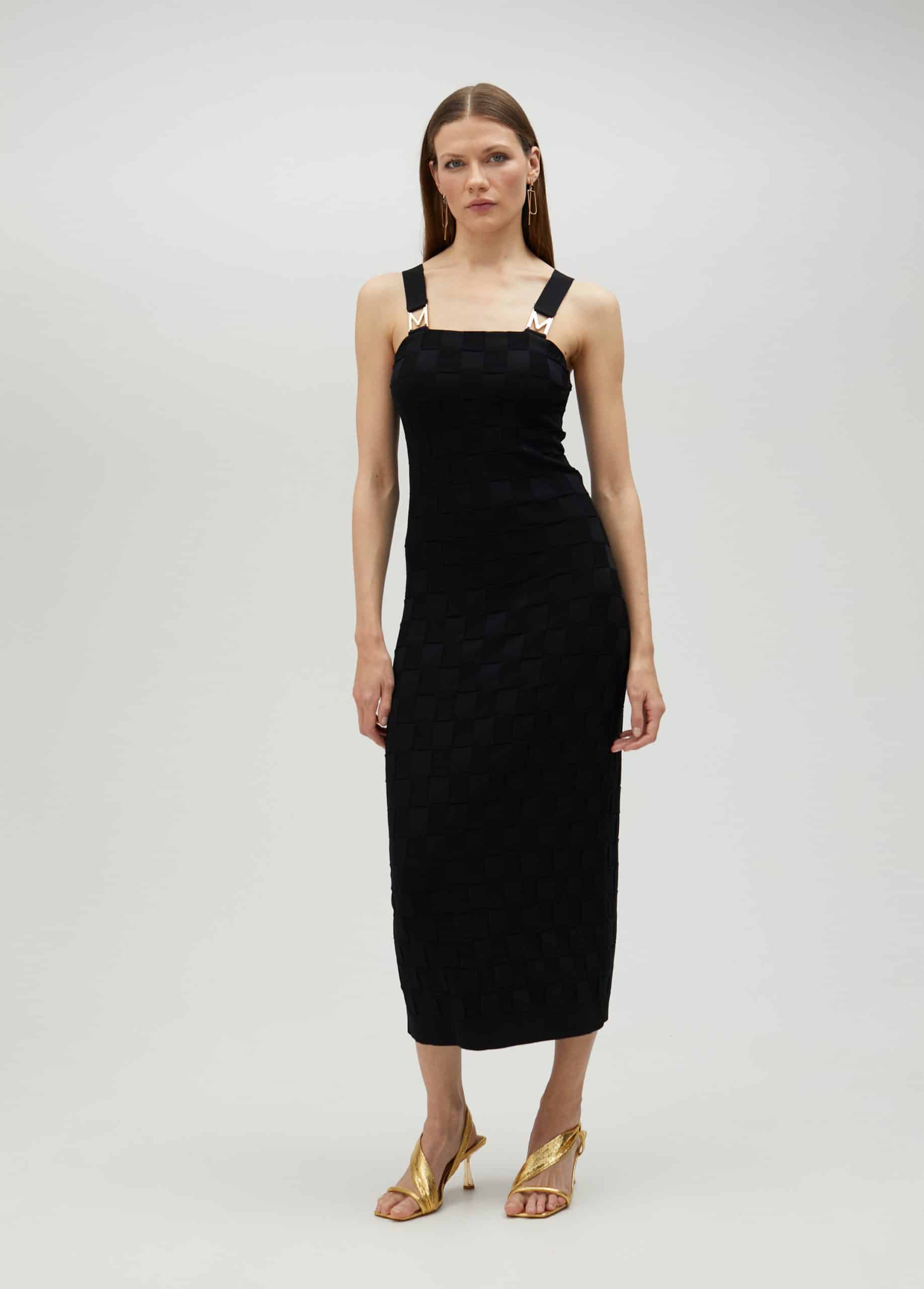 Vestido de punto negro detalle M en dorado de  Lola Casademunt