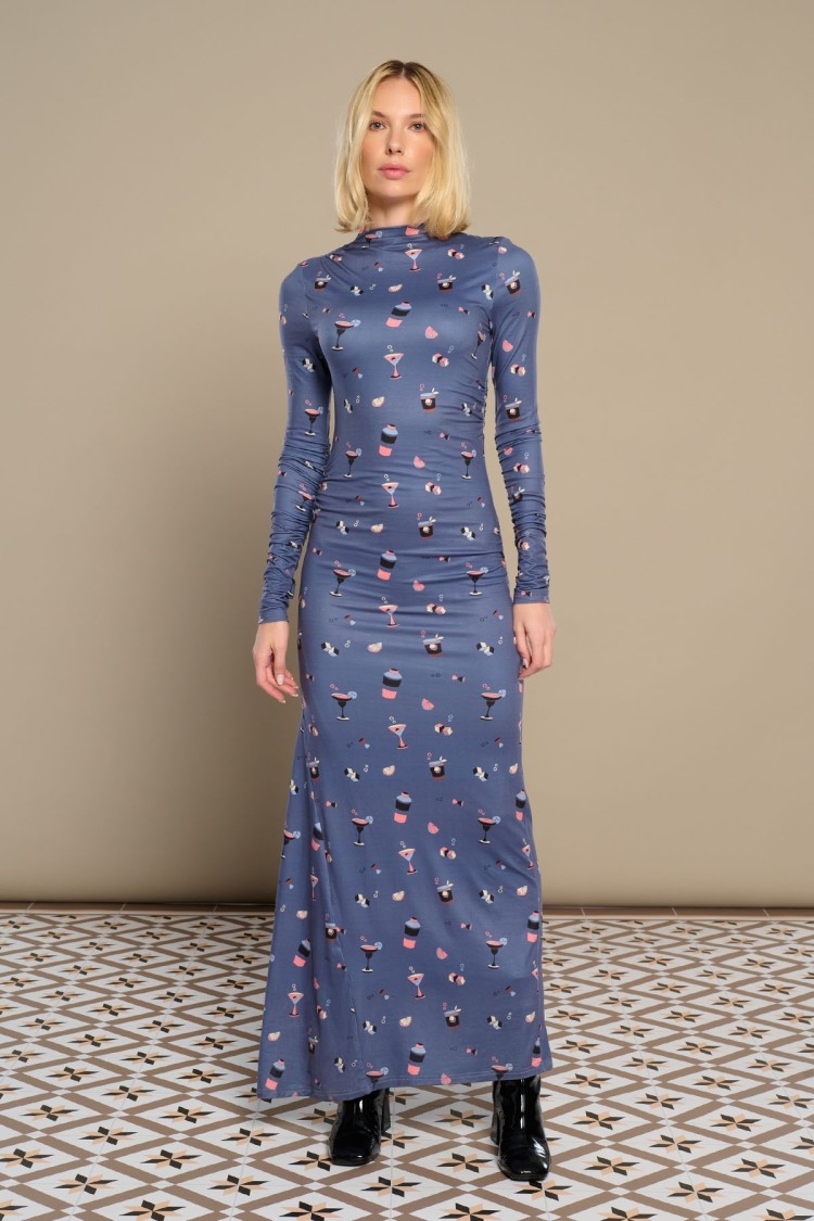 Blusa de chiffon son cuello caja y manga larga. Detalle de volantes en cintura y puños. Forro interior. La modelo mide 1,78 m y lleva la talla S.