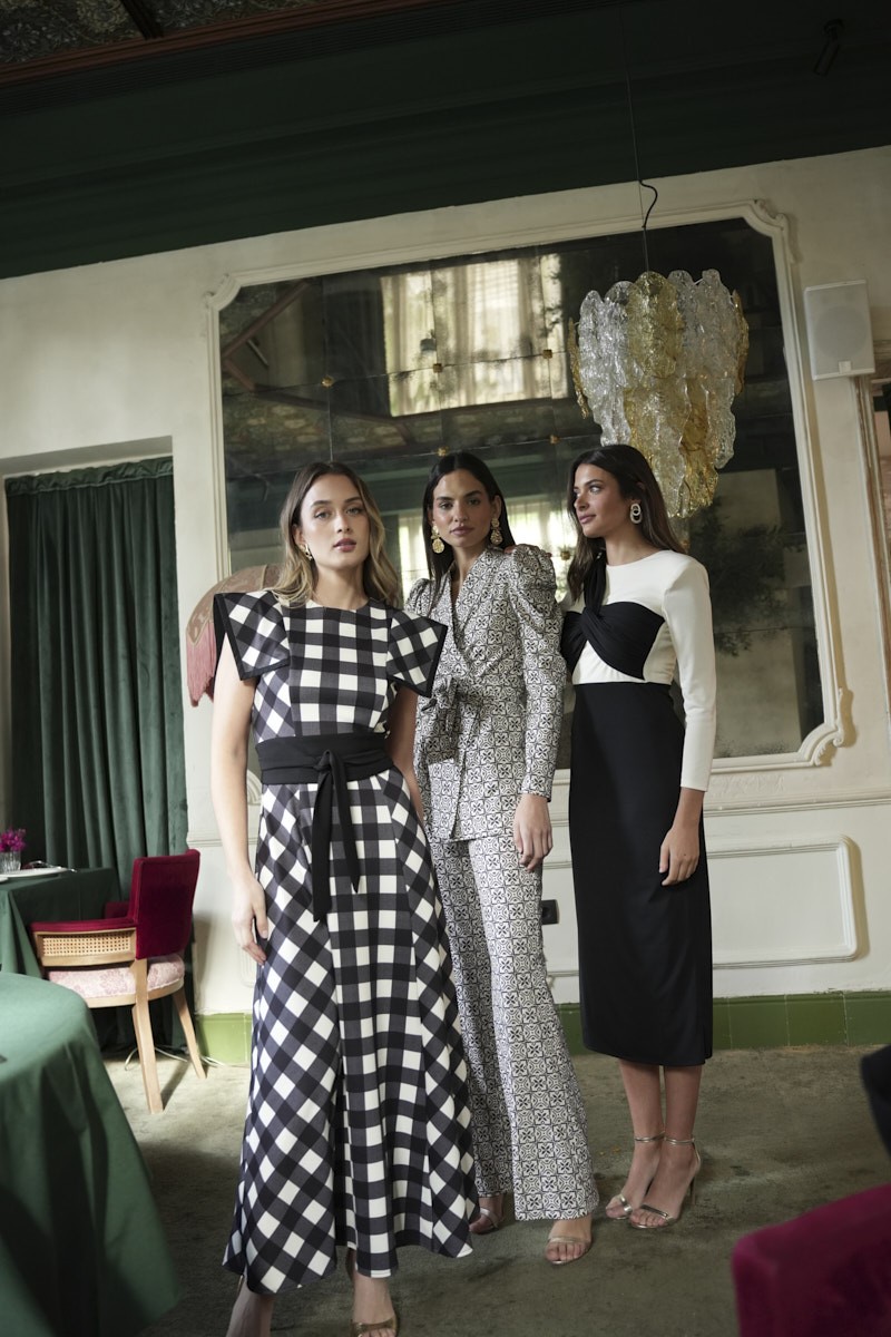 El Vestido Bass está confeccionado en tejido bioelástico de alta calidad con un elegante estampado de cuadros. Su corte nejas estiliza la figura, mientras que las solapas con vivo y el cinturón a la cintura aportan estructura y feminidad al conjunto. Cuenta con cremallera trasera.